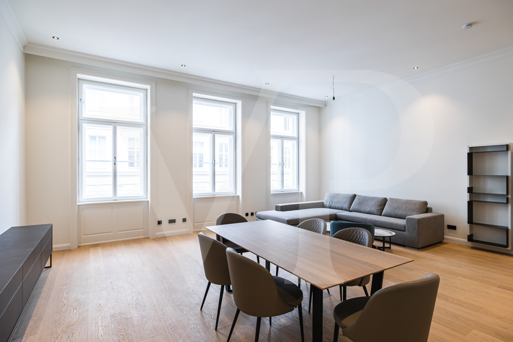 Diese außergewöhnliche Wohnung mit exklusiver Ausstattung befindet sich im 4. Liftstock eines modernen Gebäudes im Textilviertel des 1. Bezirks.