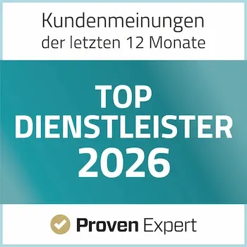 VON POLL IMMOBILIEN hat die Auszeichnung „Top Dienstleister 2026“ von ProvenExpert erhalten. Aufgrund der zufriedenen Kundenmeinungen und Empfehlungen von über 50 Kunden in den letzten 12 Monaten wurde dieser Shop mit der Note „SEHR GUT“ als besonders empfehlenswert eingestuft.