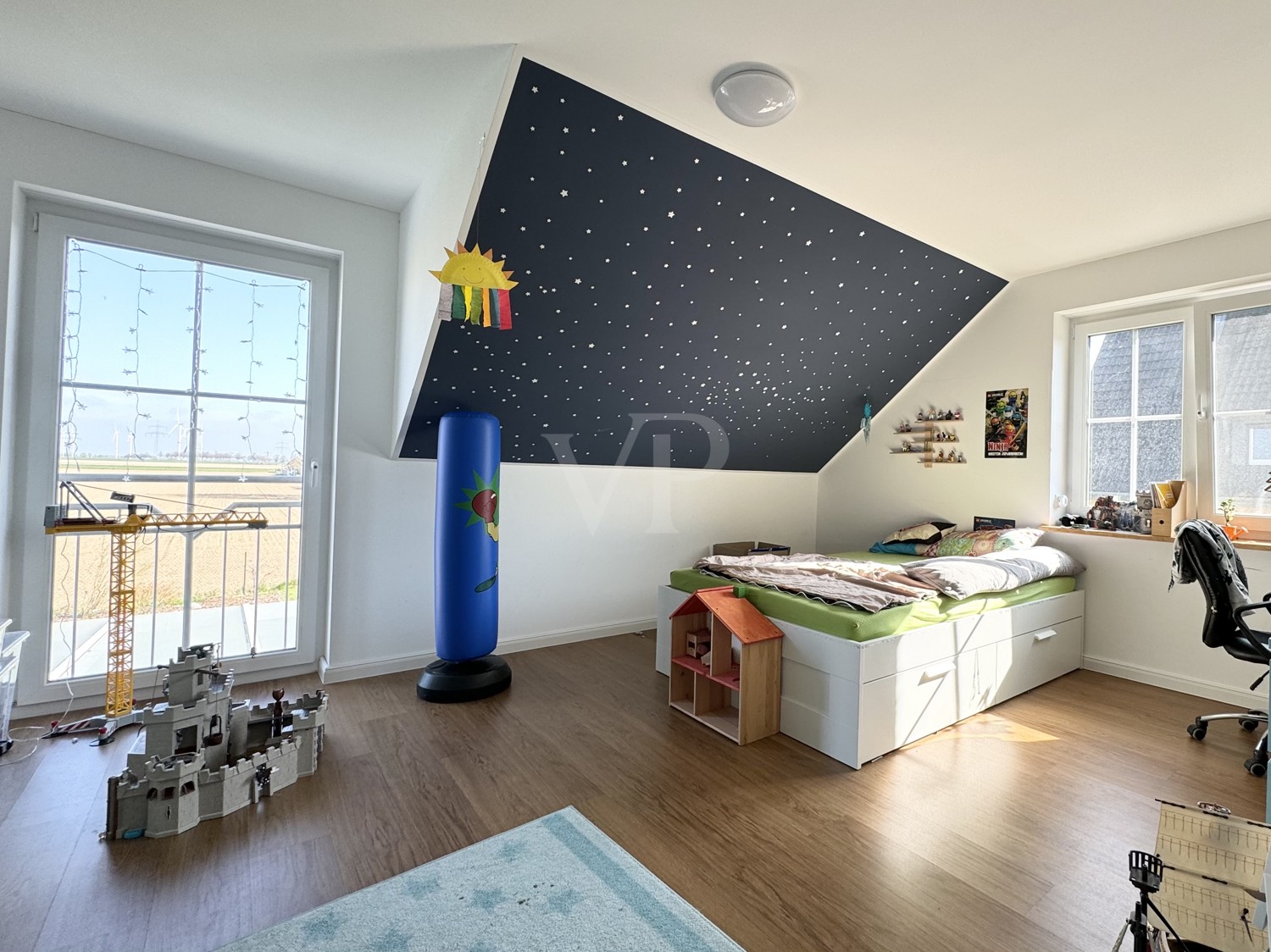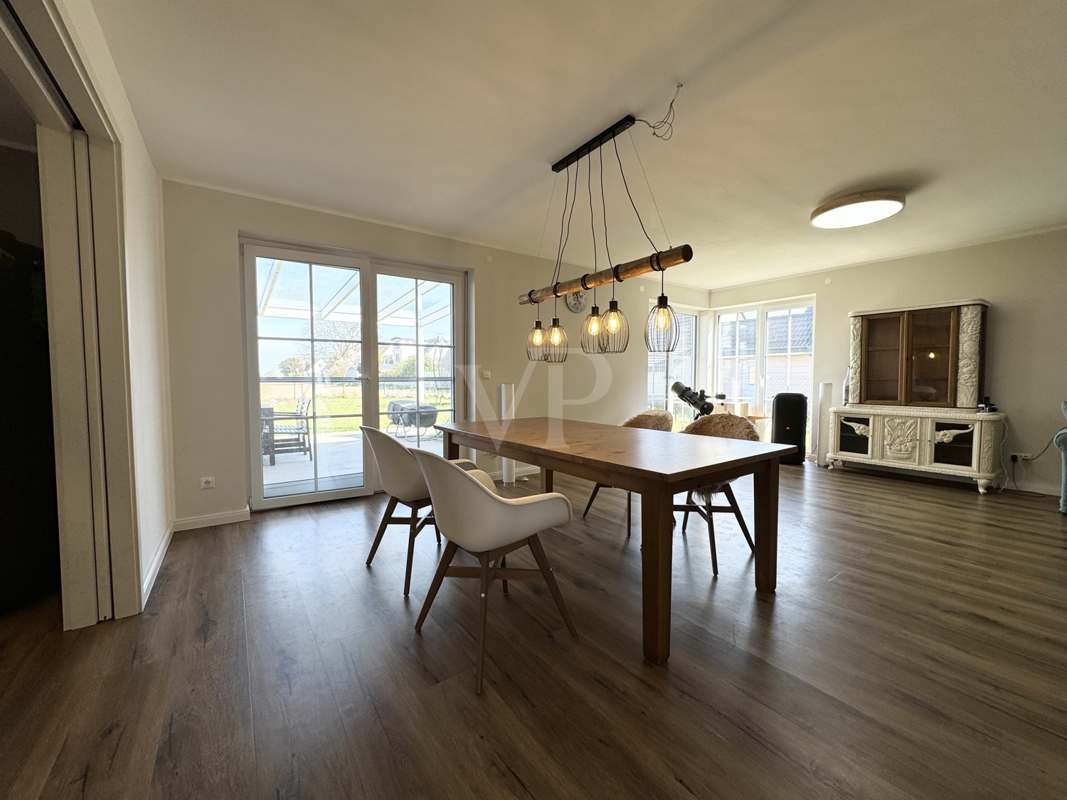Mit dieser Immobilie bietet Ihnen Von Poll Immobilien Hannover Region Süd ein neuwertiges Einfamilienhaus mit moderner Architektur und geradliniger Ausstattung an. Das 2021 erbaute Haus befindet sich auf einem ca. 839 m² großen Grundstück in ruhiger Feldrandlage. Diese Immobilie überzeugt mit ihrer Großzügigkeit und Helligkeit. Bei der Auswahl der Materialien und Farben wurde der Fokus auf einen einheitlichen Stil gelegt, so dass sich das Haus mit harmonischer Eleganz und voller positiver Energie präsentiert! Küche und Badezimmer fügen sich mit ihrem modernen Interieur perfekt in das transparente Gesamtbild ein und sorgen jeden Tag für gute Laune! Das 2021 erbaute Haus besticht durch die vielen Fenster-bzw. Terrassentürelemente, die die Zimmer mit Tageslicht fluten und gleichermaßen zu einem großzügigen Wohnambiente beitragen. Die in L-Form angelegte Einbauküche, ergänzt durch einen Küchenblock, ist ein echter Hingucker und punktet mit hochwertigen Geräten. Der an die Küche angrenzende Abstellraum sorgt für kurze Wege. Die Möglichkeit, die offen gestaltete Küche durch eine Schiebetür vom angrenzenden Wohn- / Essbereich zu separieren, wird sowohl Liebhaber von offenen als auch von geschlossenen Küchen begeistern. Im Obergeschoss können Sie fünf Zimmer ganz nach Ihren Vorstellungen einrichten. Eines der Zimmer bietet sich als praktischer Ankleideraum an, von dem aus Sie über einen Wäscheabwurf Ihre getragene Wäsche ganz bequem auf direktem Wege in den Hauswirtschaftsraum befördern können. Das großzügige Badezimmer bietet viel Platz für Komfort und Erholung. Eine Badewanne steht im Fokus Ihrer Aufmerksamkeit und verspricht entspannende Momente! Die bodengleiche Dusche und zwei Waschtische komplettieren das Angebot. Ein Gäste-WC mit Dusche im Erdgeschoss ist die perfekte Ergänzung zu dem großzügigen Familienbad im Obergeschoss und bietet mit dem im Erdgeschoss angesiedelten Zimmer, das sich gut als Büro, Gästezimmer oder Schlafzimmer einrichten lässt, die beste Perspektive, das Haus auch im Alter bewohnen zu können. Das Haus überzeugt neben seinem Komfort auch durch seine gute Energieeffizienz. Die Beheizung erfolgt über Fußbodenheizung, die durch eine Wärmepumpe betrieben wird und für wohlige Wärme in allen Räumen sorgt. An heißen Sommertagen hingegen profitieren Sie von der Kühlfunktion der Heizung. Durch eine Photovoltaik-Anlage mit Speicher sind Sie nahezu das ganze Jahr über autark. Diese trägt, ebenso wie die dreifach verglasten Fenster mit elektrischen Außenrollläden sowie die Außendämmung, zur Energieeffizienzklasse A+ des Hauses bei. Stauraum finden Sie im Hausanschluss- / Hauswirtschaftsraum. Ein weiteres Highlight ist die geräumige Terrasse, die sowohl vom Wohnzimmer als auch von der Küche aus zugänglich ist. Der angrenzende Garten ist pflegeleicht mit einer Rasenfläche angelegt und umlaufend mit einem Zaun eingerahmt. Während Sie Ihre Quality-Time im Garten verbringen, erleichtert Ihnen ein Rasenmähroboter die Pflege des Gartens. Eine Doppelgarage mit Sektionaltor, zu der Sie gleichermaßen Zugang vom Garten aus als auch von dem Hauswirtschaftsraum haben, vervollständigt das Angebot im Außenbereich. Die geräumige Garage bietet nicht nur ihrem PKW einen trockenen Platz, sondern kann auch als Abstellraum für Fahrräder und Gartenutensilien genutzt werden.