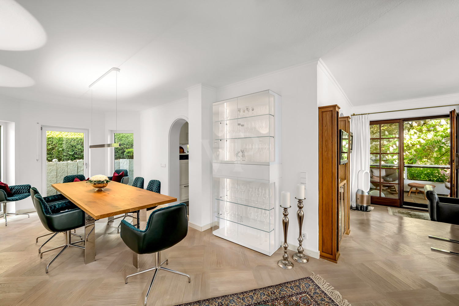 Die hochwertige Einbauküche aus dem Jahr 2014 überzeugt mit Geräten der Premiummarken Gaggenau und Miele und lässt das Herz jedes Kochliebhabers höherschlagen. Separate Gäste-WCs auf allen Etagen sowie edle „Axor“-Armaturen in allen Bädern unterstreichen den gehobenen Ausstattungsstandard.