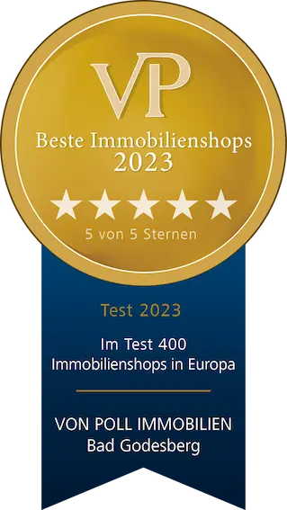 Mit dem VP Siegel 'Beste Immobilienshops 2023' werden in erster Linie die professionelle Leistung, Zuverlässigkeit und Leidenschaft bewertet, mit der jeder einzelne Partner eines VON POLL IMMOBILIEN Shops zum Erfolg seines Teams beiträgt. Darüber hinaus werden auch der Auftritt des Shops, der Teamaufbau, analoge und digitale Vermarktungskonzepte sowie Marketingaktivitäten berücksichtigt.