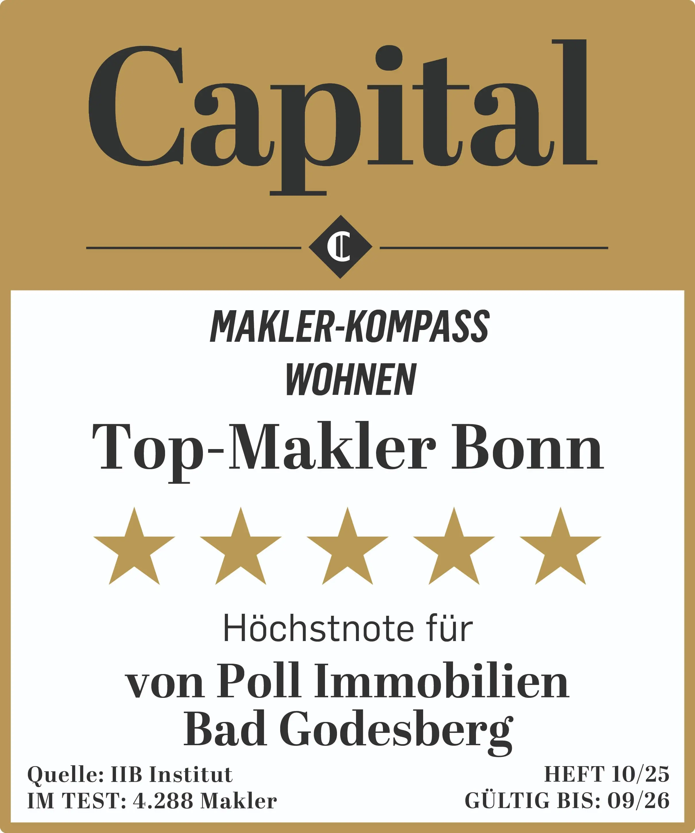Capital Makler-Kompass 2025: Auszeichnung als 5-Sterne-Makler