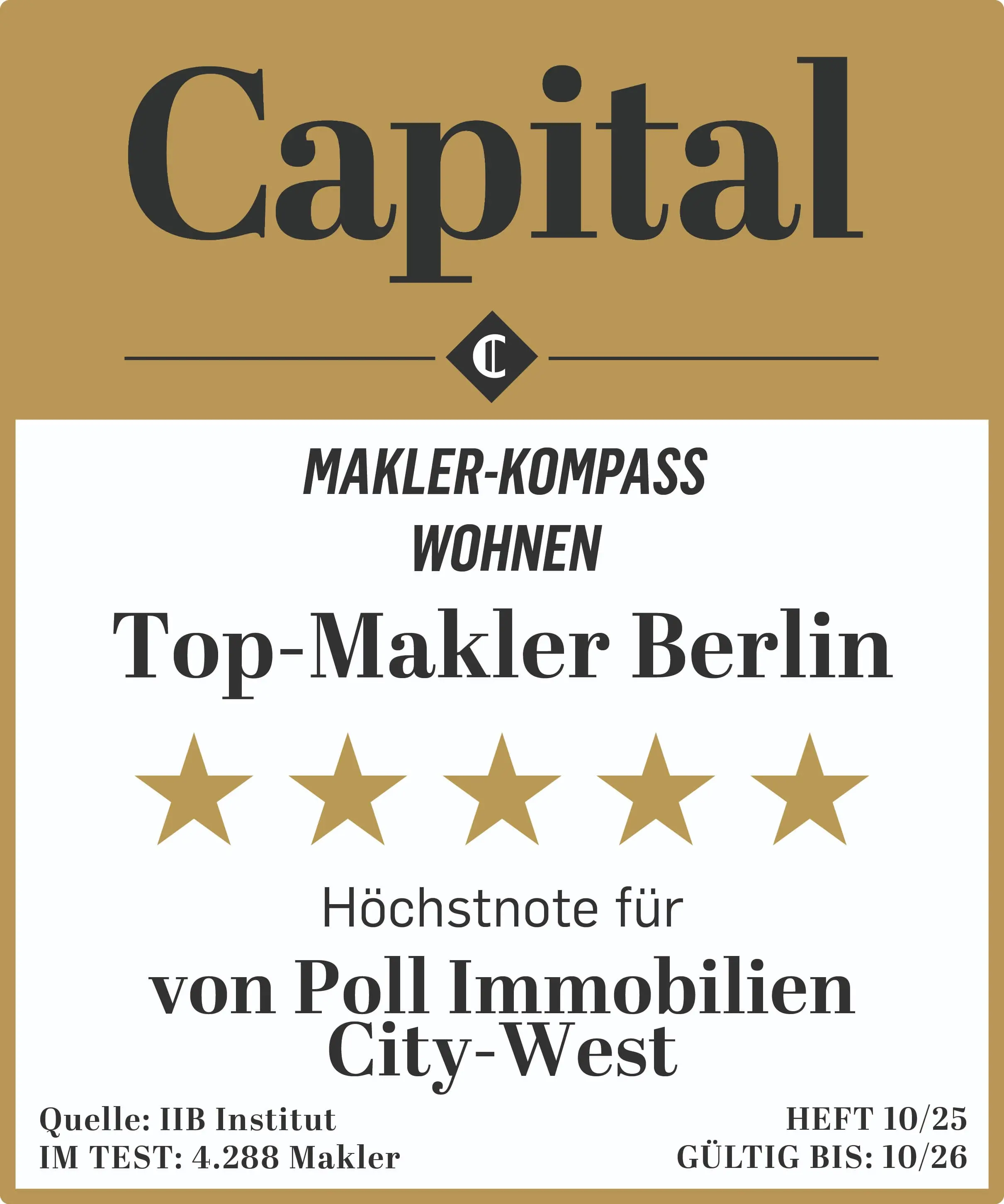 Wenn Sie als Eigentümer kurz- oder mittelfristig den Verkauf oder die Vermietung Ihrer Immobilie in Charlottenburg, Wilmersdorf und Umgebung planen, ist Ihr VON POLL IMMOBILIEN Team in der Berliner City-West gern für Sie da, um den passenden Käufer für Ihr Haus oder Ihre Wohnung zu finden. Als traditionsbewusstes und gleichermaßen innovatives Maklerunternehmen verfügt VON POLL IMMOBILIEN über exzellente lokale Marktkenntnisse sowie hervorragende Kontakte zu kaufkräftigen Interessenten, die in Charlottenburg und Umgebung Immobilien zum Kauf oder zur Miete suchen.