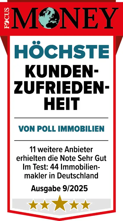 VON POLL IMMOBILIEN wird erneut von Focus Money mit dem Gütesiegel „Höchste Kundenzufriedenheit“ ausgezeichnet. Gemeinsam mit ServiceValue hat das Wirtschaftsmagazin wieder untersucht, wie zufrieden Kunden mit angebotenen Produkten und Dienstleistungen wirklich sind und dabei 268.381 Verbraucherstimmen zu 1.585 Unternehmen aus 74 Branchen ausgewertet.