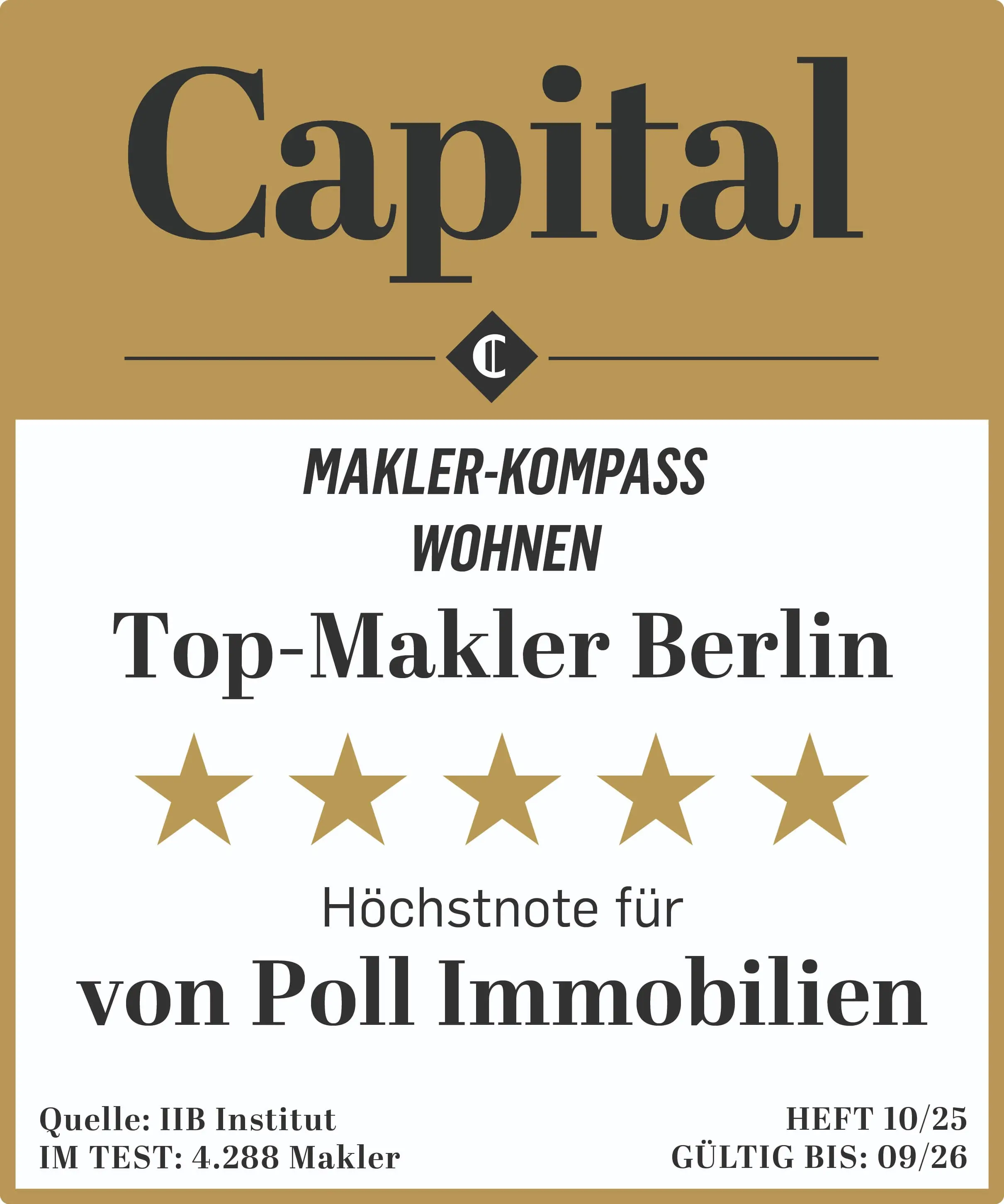 Capital Makler-Kompass 2025: Auszeichnung als 5-Sterne-Makler