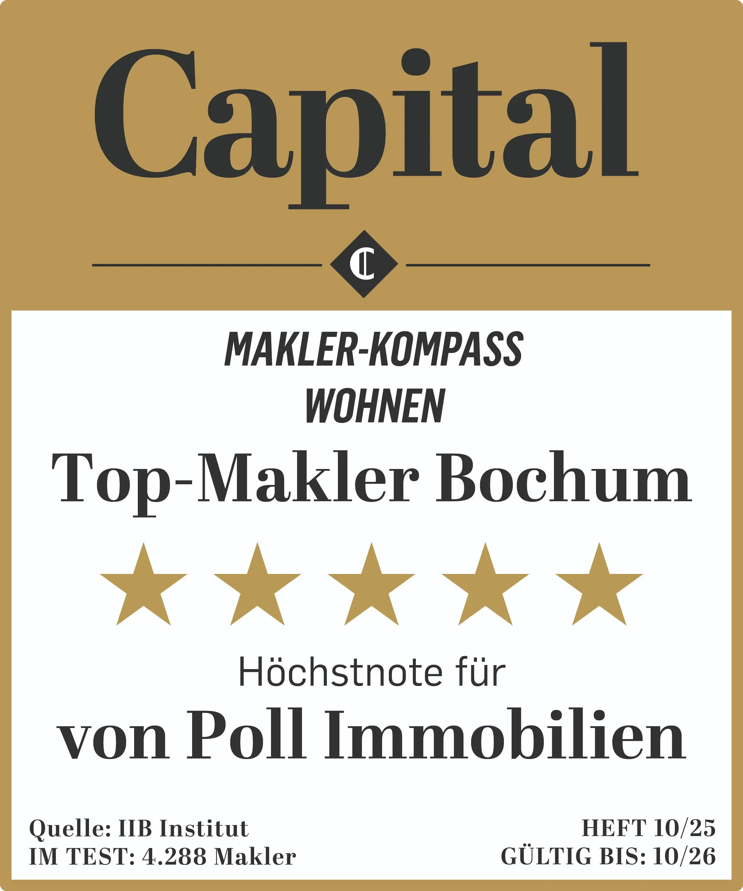 Capital Makler-Kompass 2025: Auszeichnung als 5-Sterne-Makler