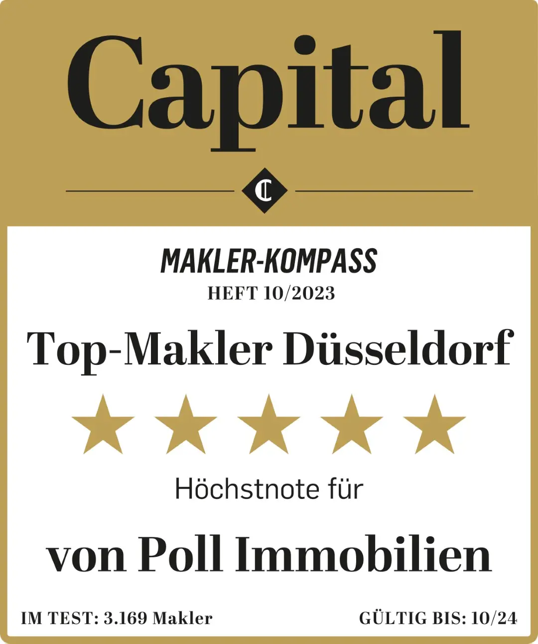 VON POLL IMMOBILIEN Düsseldorf zum 7. Mal in Folge mit der Höchstnote und als bester Makler in Düsseldorf ausgezeichnet