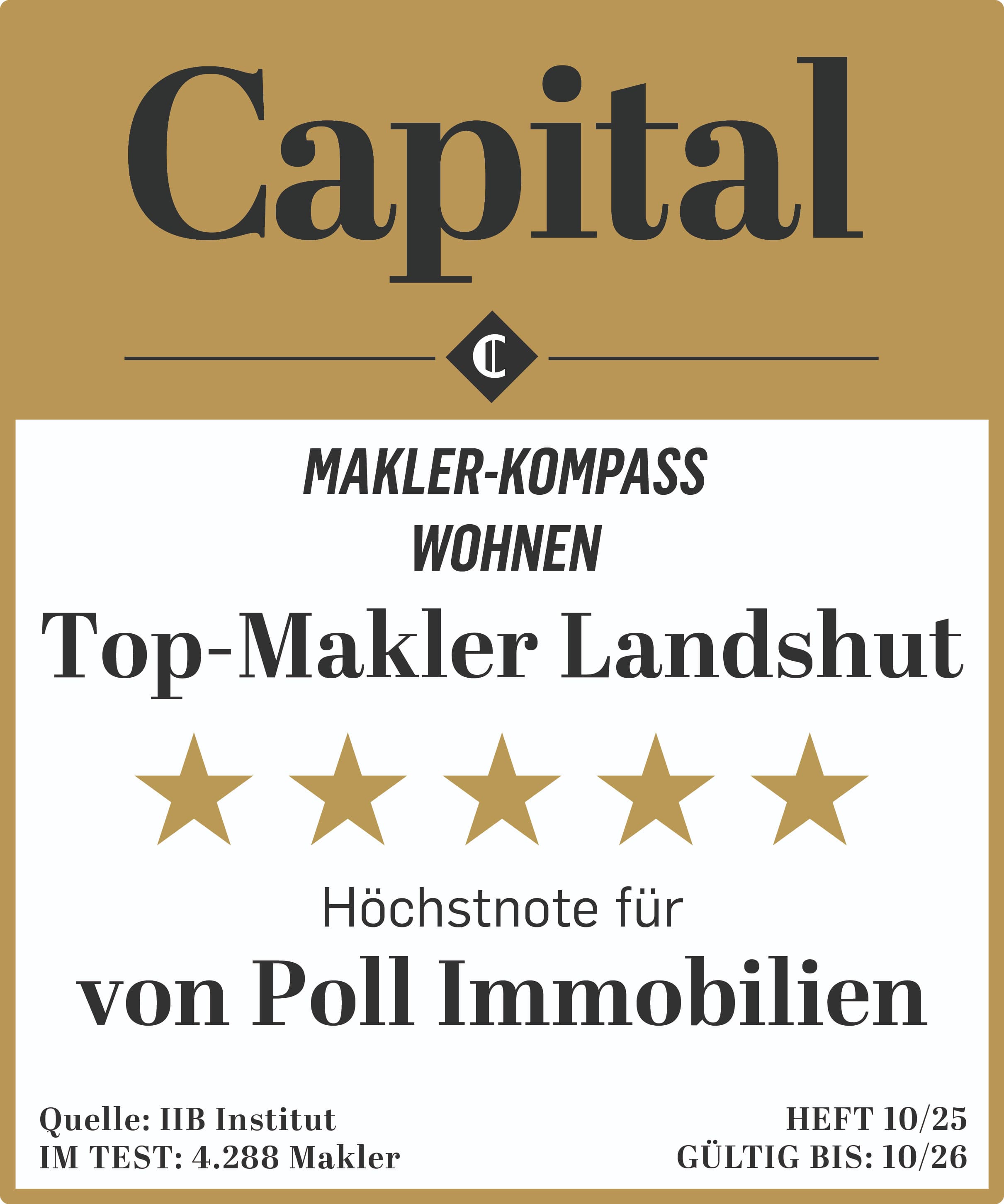 Capital Makler-Kompass 2025: Auszeichnung als 5-Sterne-Makler