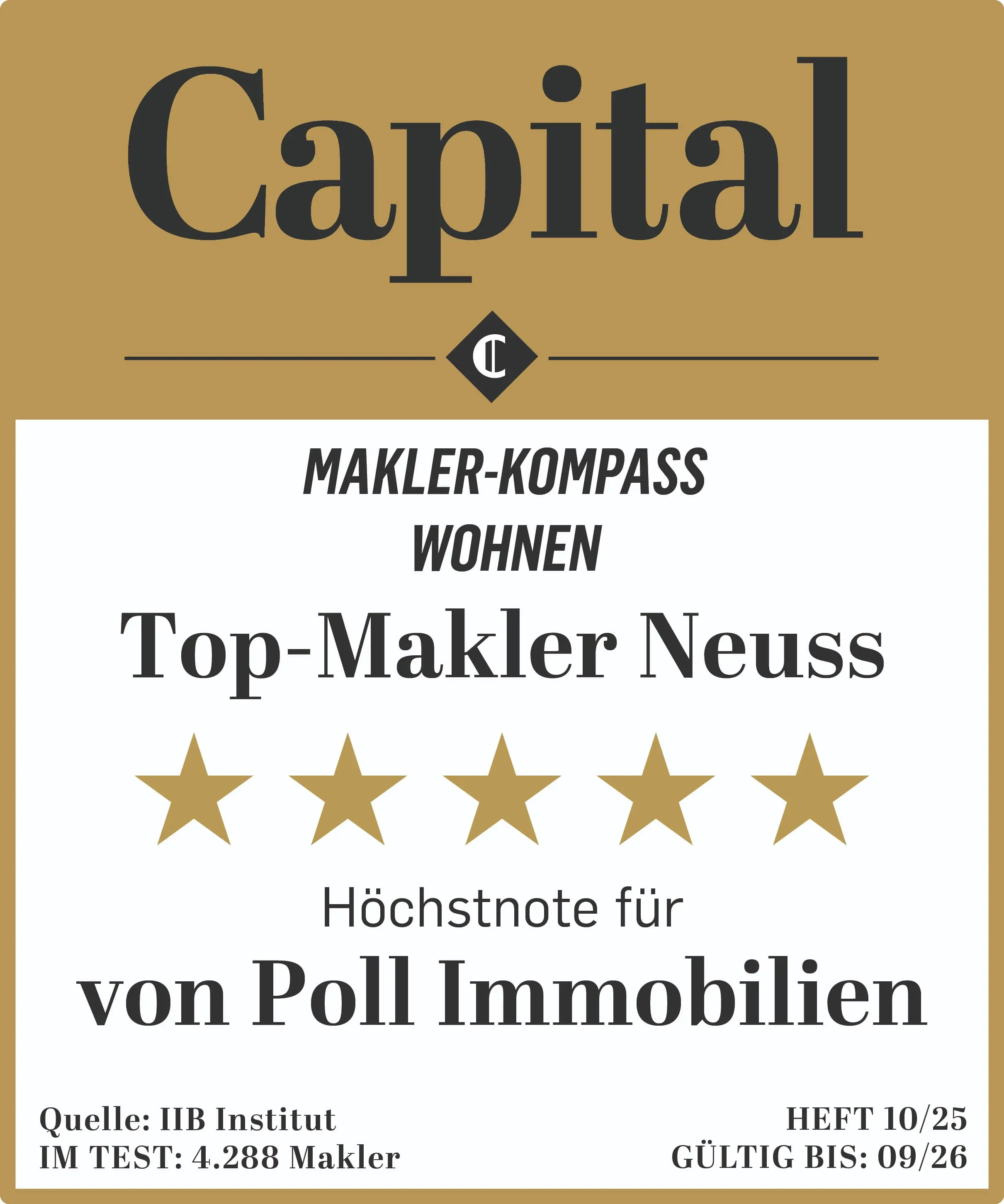 Wenn Sie auf der Suche nach einem neuen Zuhause in Neuss, Kaarst, Grevenbroich oder Umgebung sind, wenden Sie sich gern an Ihr VON POLL IMMOBILIEN Team in Neuss, um die Immobilie zu finden, die Ihren individuellen Vorstellungen bestmöglich entspricht. Unabhängig davon, ob Sie ein Haus oder eine Wohnung im Rheinkreis Neuss kaufen bzw. mieten wollen: Als selbstständige Immobilienmakler in Neuss sind wir mit den regionalen Marktgegebenheiten bestens vertraut und verfügen über langjährige Erfahrung in der erfolgreichen Immobilienvermittlung. Besuchen Sie uns in unserem selbstständigen VON POLL IMMOBILIEN Partner-Shop in Neuss: Hier stehen Ihnen Ihre Immobilienmakler in gern mit vielfältigen Premiumleistungen zur Seite. Darüber hinaus sind wir auch in anderen Regionen im gesamten Kreisgebiet mit allen kreiszugehörigen Städten in Neuss, Kaarst, Korschenbroich, Grevenbroich, Dormagen, Jüchen und Rommerskirchen sowie dem gesamten Stadtgebiet von Willich und Meerbusch in den besten Lagen für Sie vor Ort.
