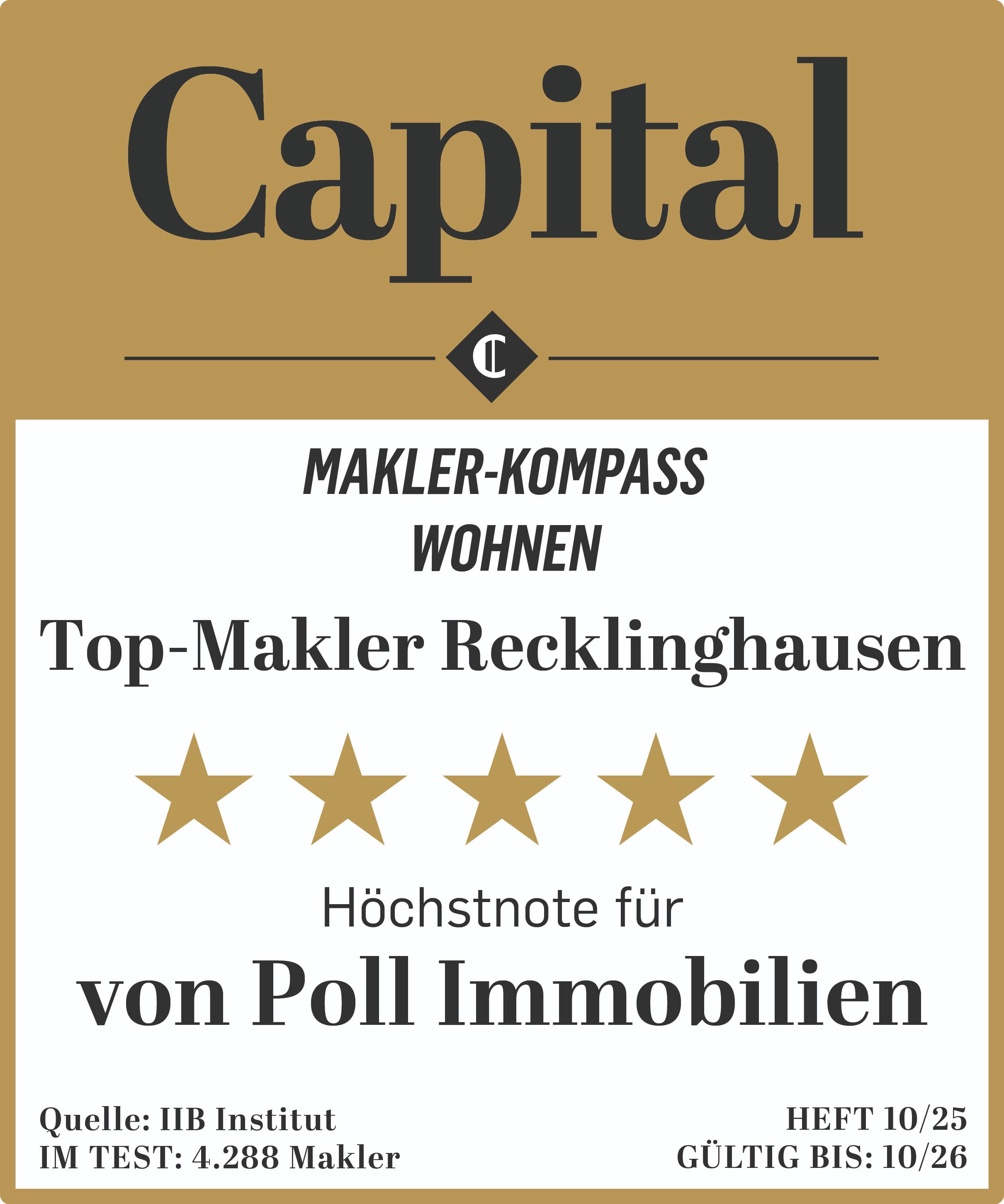Capital Makler-Kompass 2025: Auszeichnung als 5-Sterne-Makler