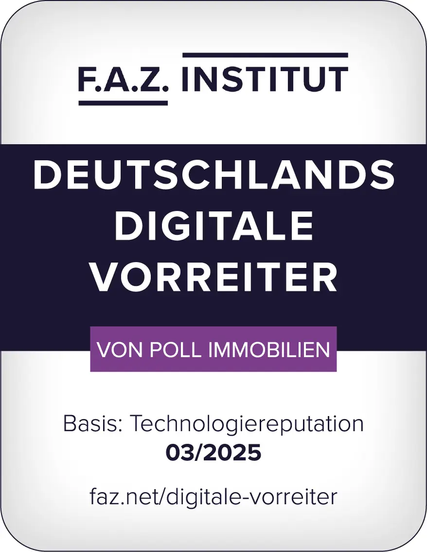 VON POLL IMMOBILIEN erhält vom SZ-Institut – aus dem Hause der renommierten Süddeutschen Zeitung – die Auszeichnung „Innovativste Unternehmen 2025“. Dabei ist der Premiummakler mit Hauptsitz in Frankfurt am Main der einzige Vertreter aus der Maklerbranche, der es überhaupt in das Ranking der innovativsten Unternehmen Deutschlands geschafft hat.
