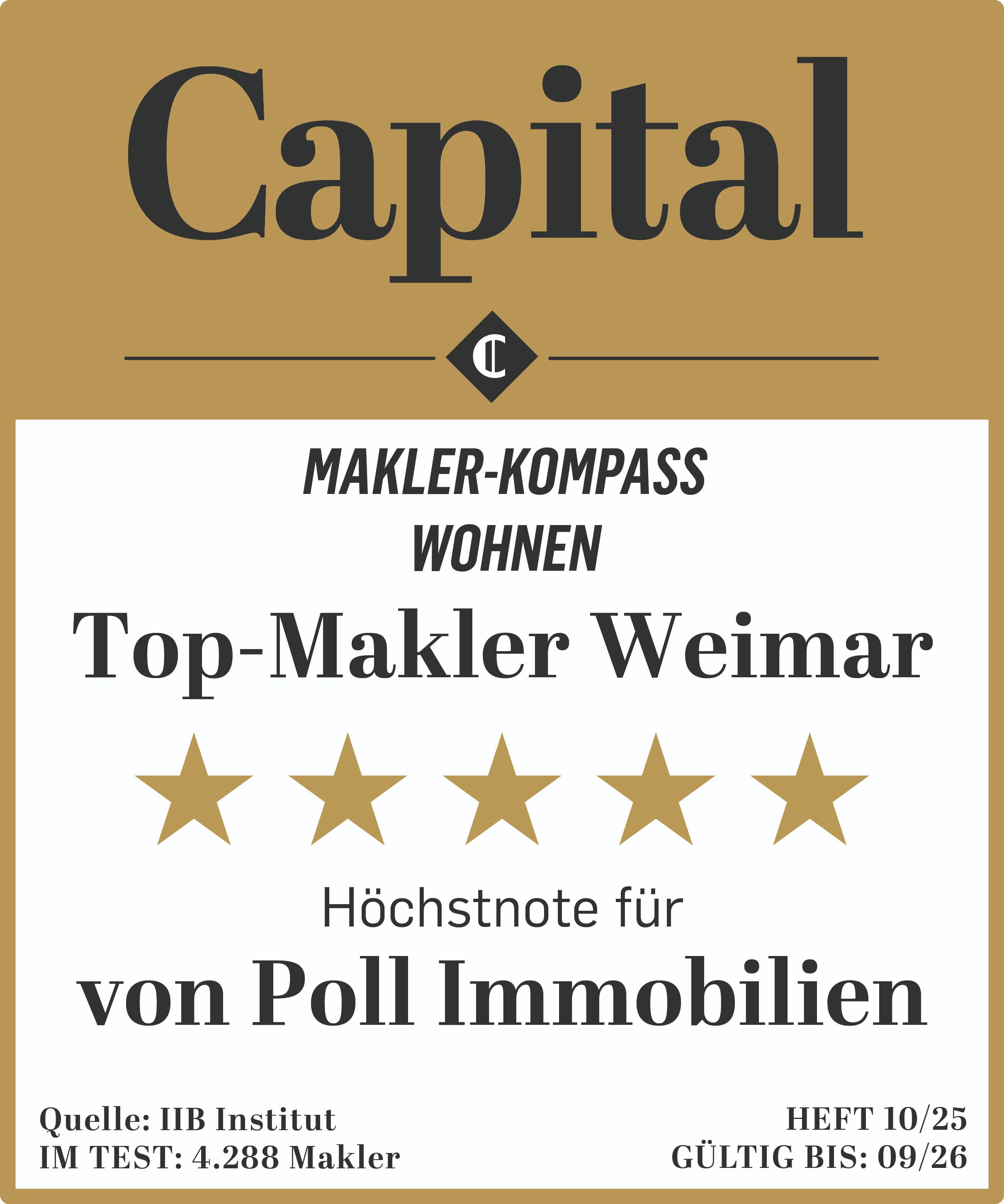 Sie möchten in Weimar ein Haus kaufen oder eine Wohnung kaufen? Oder planen Sie den Verkauf Ihrer Immobilie durch einen kompetenten Makler? Als Immobilienberater und Experten für den Immobilienmarkt sind wir Ihr zuverlässiger Partner für die Vermittlung Ihrer Immobilie – lokal und überregional. Eigentümern bieten wir eine kostenfreie Immobilienbewertung (PersCert®/WertCert®) an.
