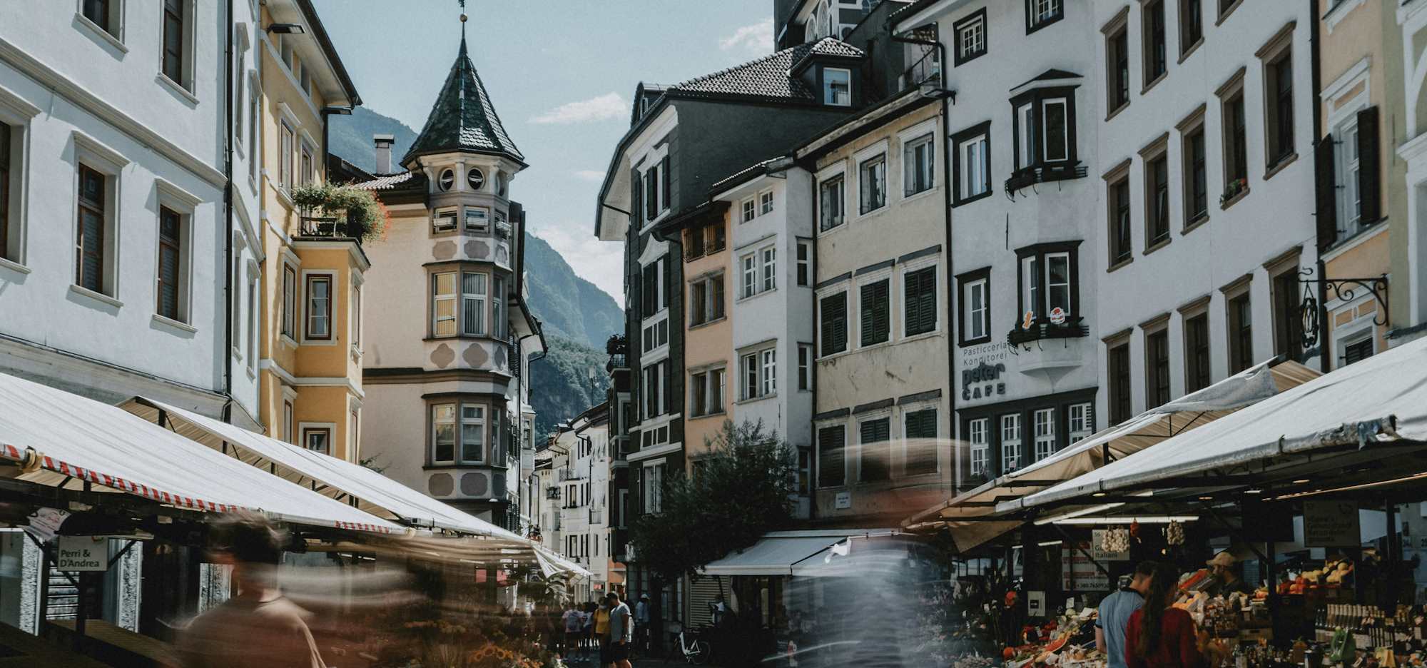 Auch Meran, bekannt für sein mildes Klima und seine Thermen, bietet eine breite Palette an Immobilien. Hier dominieren stilvolle Altbauwohnungen und luxuriöse Villen mit Blick auf die Kurstadt.
