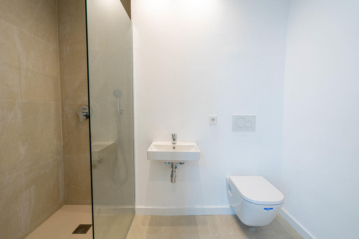 This high-quality property was completed in 2024 and consists of three individual terraced houses. There are three bedrooms and two bathrooms in this unit. The bright living/dining area with the integrated high-quality kitchen and the terrace above offer a beautiful ambience and a great view of the surrounding landscape. The units share an underground garage, in which two parking spaces and a storage room are available. The high-quality fixtures and fittings include underfloor heating, fitted wardrobes, integrated air conditioning and real wood parquet flooring in the bedrooms.