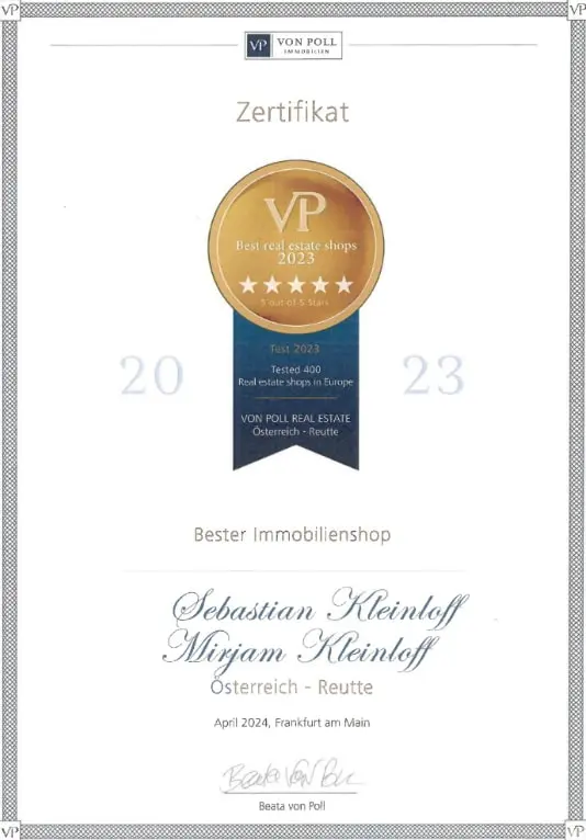 Hemos estado en contacto con Von Poll Immobilien en Reutte en varias ocasiones. Siempre hemos recibido un asesoramiento muy amable y competente y se han concertado citas de visita con poca antelación y de acuerdo con nuestros deseos. Podemos recomendar Von Poll Immobilien.