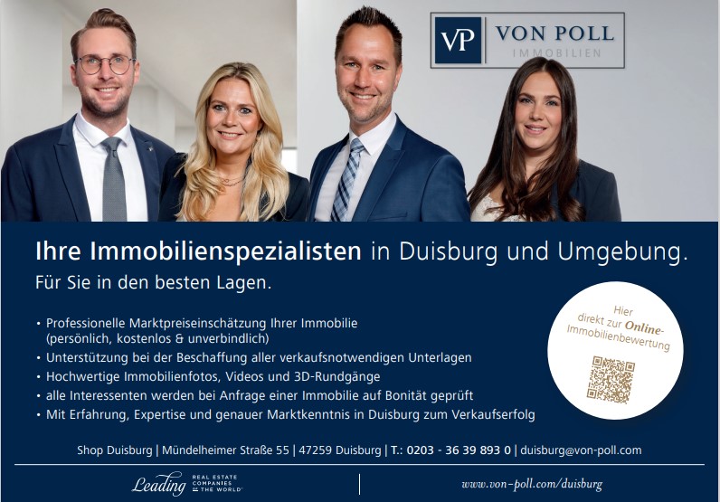 Duisburg: a localização ideal para os compradores de imóveis Duisburg oferece inúmeras vantagens para os compradores de imóveis, especialmente em comparação com Düsseldorf. Com preços imobiliários atractivos, uma vasta gama de opções de habitação e excelentes ligações à capital do estado, a cidade é uma opção atraente para famílias e investidores. Duisburg também se orgulha de ter uma comunidade animada, excelentes instalações de lazer e perspectivas de futuro promissoras. O desenvolvimento urbano contínuo e a crescente qualidade de vida fazem de Duisburgo um destino interessante para investimentos imobiliários. Aproveite a experiência da VON POLL IMMOBILIEN DUISBURG para encontrar o imóvel certo nesta cidade dinâmica.