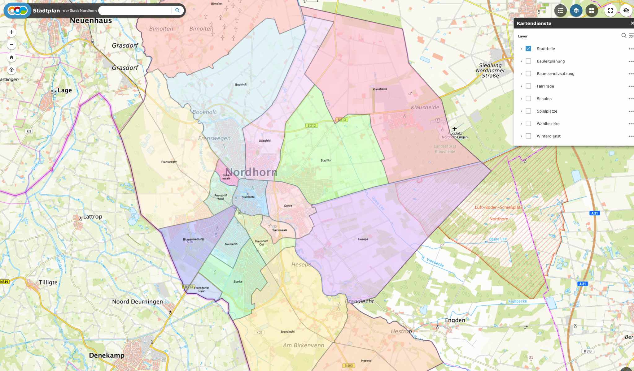 Nordhorn, a encantadora cidade no sudoeste da Baixa Saxónia, está dividida em numerosos bairros e zonas residenciais - desde a histórica cidade velha até às novas zonas residenciais, como o Blumensiedlung. De seguida, farei uma breve apresentação de cada bairro - com base no mapa oficial do ArcGIS, claro.