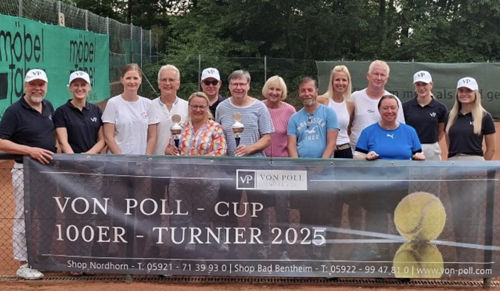 Os pares mistos bem sucedidos com o patrocinador do torneio, Georg Pauling (à esquerda) e a diretora do torneio, Petra Knecht (terceira a contar da direita). Foto: privada